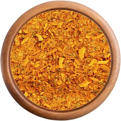 Wzbogacona cebulą, czosnkiem, kurkumą, pasternakiem i odrobiną dymu, mieszanka przypraw oferuje kuszącą kombinację pikantnych, ziemistych i wędzonych nut. Rezultatem jest dobrze zrównoważona przyprawa, która przenosi Twoje kulinarne kreacje na wyższy poziom, zamieniając je w naprawdę niezapomniane i satysfakcjonujące dania. Niezależnie od tego, czy gotujesz na specjalną okazję, czy po prostu dodajesz smaku codziennym posiłkom, mieszanka przypraw Crunchy Umami będzie idealnym towarzyszem.
