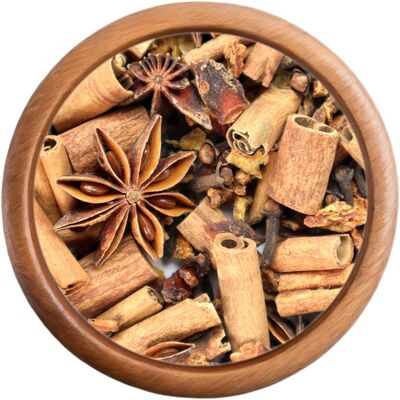 Tyrolski poncz to zimowy klasyk, który rozgrzeje Twoje ciało i duszę. Jego sekret tkwi w odpowiedniej mieszance przypraw. Anyż gwiaździsty znany jest z mocnych nut anyżowych, które od razu przywodzą na myśl zimową zabawę. Skórka pomarańczowa dodaje cytrusowej świeżości, która nadaje ponczowi świeży akcent. Imbir ze swoją przenikliwą, pikantną nutą naprawdę Cię rozgrzeje, a goździki wydobywają słodko-korzenne nuty, tak charakterystyczne dla zimowych napojów. Na koniec cynamon — królowa przypraw — dodaje słodkiego, drzewnego zapachu, który jest synonimem komfortu i domowego ciepła.