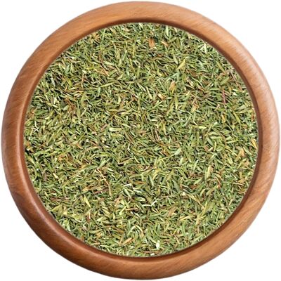 Tymianek jest używany ze względu na swój charakterystyczny smak i aromat sam lub jako część mieszanki przypraw do ryb, drobiu, dziczyzny i pasztetów mięsnych. Wskazówka dla Ciebie: wymieszaj tymianek z bazylią, oregano i ewentualnie majerankiem i posyp powstałą mieszanką pizzę z pomidorami i serem.